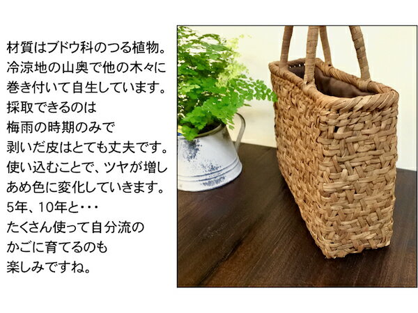 使うほどに、味わい深くなる天然素材の山葡萄かごバッグ!とても丈夫で、収納力も抜群です。