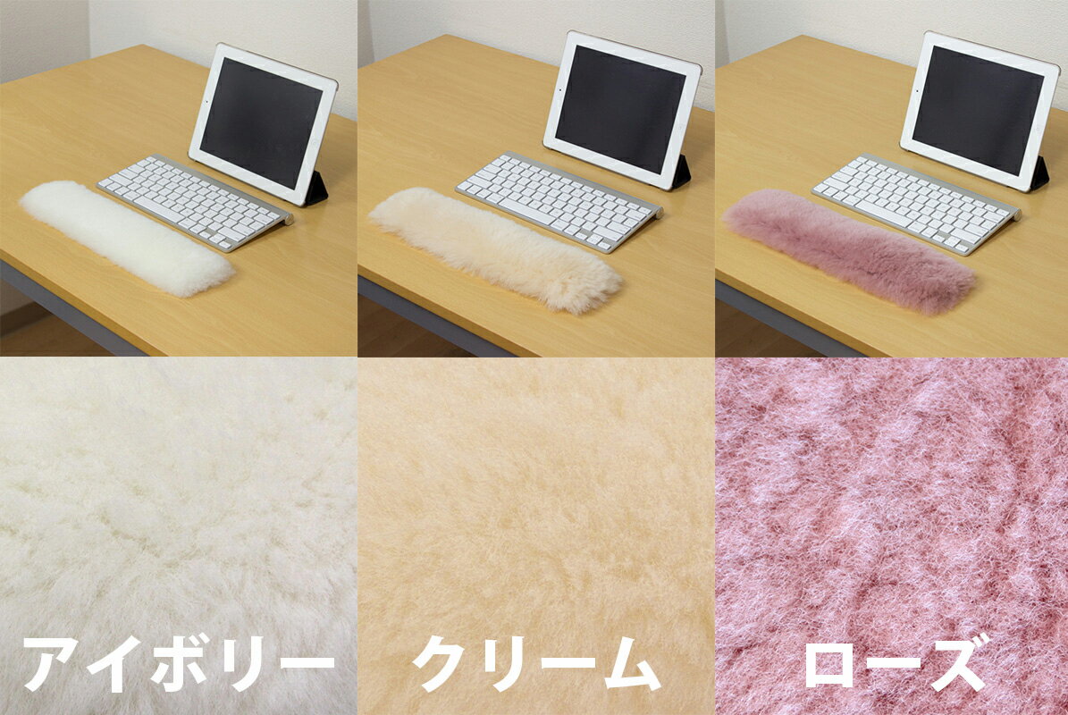 《メール便OK》ムートン製リストレスト ショートサイズ(キーボード用) 【アイボリー/クリーム/ローズ】[天然 天然素材 オフィス パソコン PC かわいい]《ギフト対応OK》