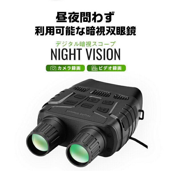 (単三電池6本必要※別売り) 【主な特徴】 ・暗闇でも撮影可能! 暗視撮影距離:約300m! ・赤外線LED搭載ナイトビジョン双眼鏡型暗視カメラ ・長時間キレイに録画! HD画質で120分以上! ・光学3倍、デジタル4倍ズームで鮮明 ・ナイトビジョン(暗視カメラ)7段階モード搭載 【利用用途】 コンサート、サバイバルゲーム、野生動物観察、アウトドア、キャンプ、警備や工事現場などの夜間撮影など 機能 動画サイズ 1280×960px,640×480px 静止画サイズ 1280×960px,640×480px 記録メディア microSD(最大32GB) 倍率 光学3倍、デジタル4倍ズーム レンズタイプ ズームレンズ レンズ構成 F=1.2f=25mm 電源 単三電池×6本 本体サイズ 205mm ×117mm × 35mm 重さ 546g セット内容 本体、専用ケース、首かけ専用ストラップ、 microUSBケーブル 付属機能 三脚取り付け可・専用ストラップ取り付け可 暗視撮影距離 約300m 赤外線モード 7段階 注意事項 ※ ご注文後のキャンセル、イメージ違い返品不可です。